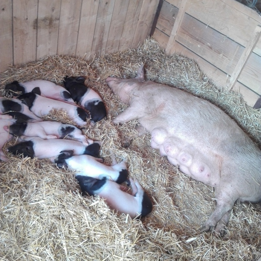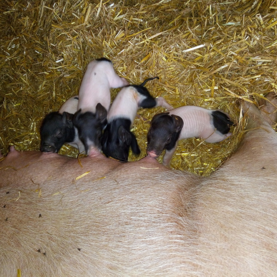 Ihre Ferkel dürfen 10 Wochen bei ihrer Mutter bleiben – deutlich länger als üblich. Erst dann, mit etwa 25–30 kg, ziehen sie weiter zu anderen Bio-Betrieben, die sie großziehen.