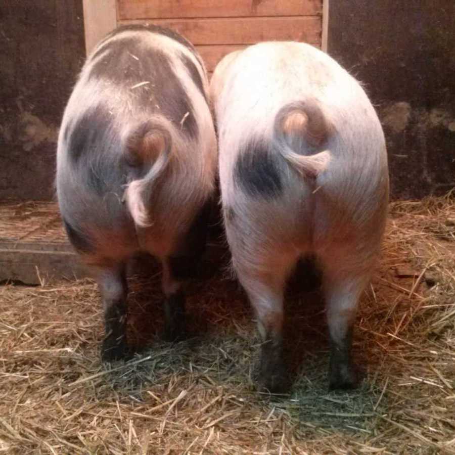 Zwei Muttersauen und Eber Fred leben bei uns im Stall mit viel Stroh und direktem Zugang ins Freie. Ob drinnen wühlen oder draußen Sonne tanken – sie entscheiden selbst, wo sie sich am liebsten aufhalten.
